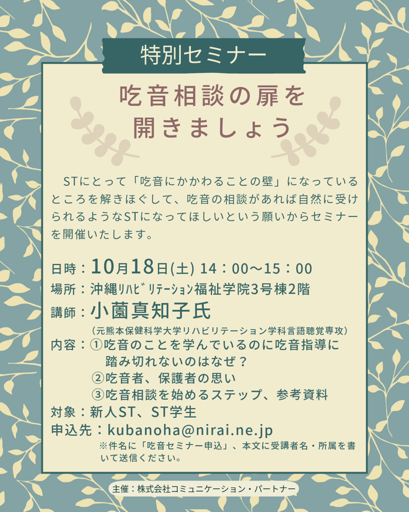 🌟ST学生/新人ST向け 吃音特別セミナー🌟